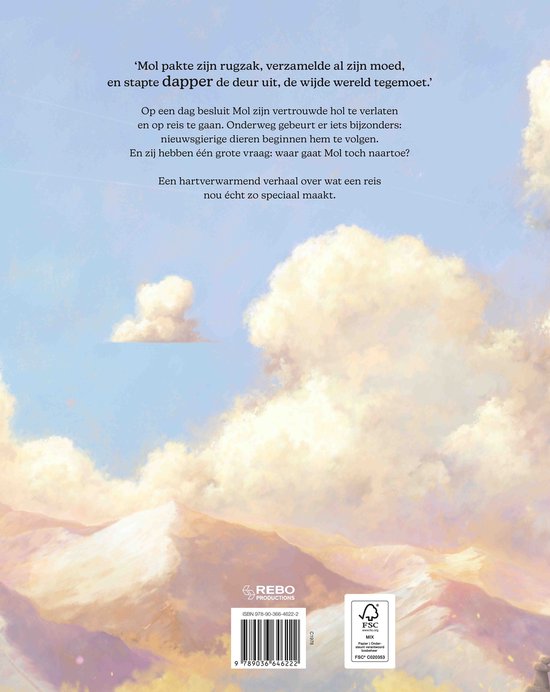 Op een dag besluit Mol zijn vertrouwde hol te verlaten en op reis te gaan. Onderweg gebeurt er iets bijzonders: nieuwsgierige dieren beginnen hem te volgen. En zij hebben één grote vraag: waar gaat Mol toch naartoe? Een hartverwarmend verhaal over wat een reis nou écht zo speciaal maakt.