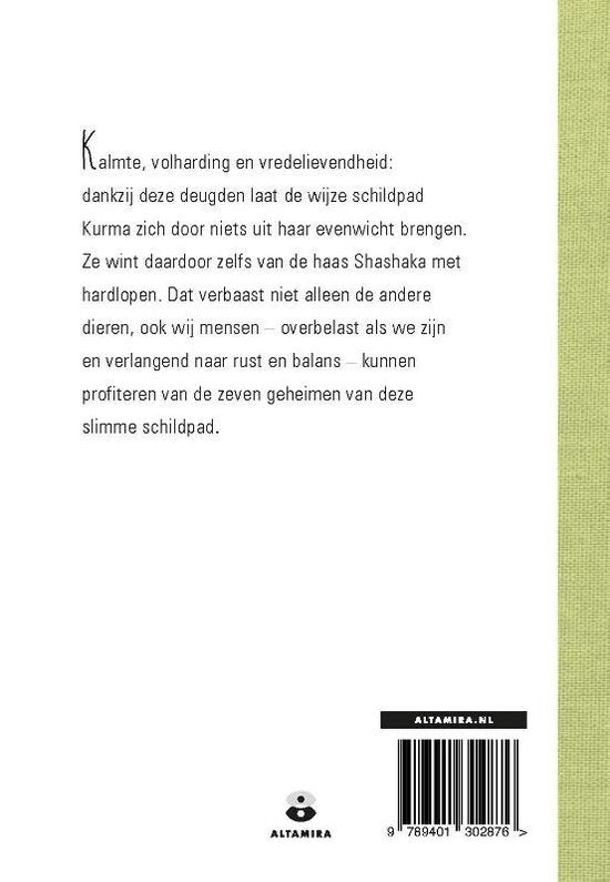 Wijsheid, kalmte, geborgenheid: dankzij deze deugden laat de wijze schildpad Kurma zich door niets uit haar evenwicht brengen. Ze wint daardoor met hardlopen zelfs van Shashaka, de haas! Dat verbaast niet alleen de andere dieren... Ook wij mensen, overbelast als we zijn en verlangend naar rust en harmonie, kunnen profiteren van de zeven geheimen van deze slimme schildpad.