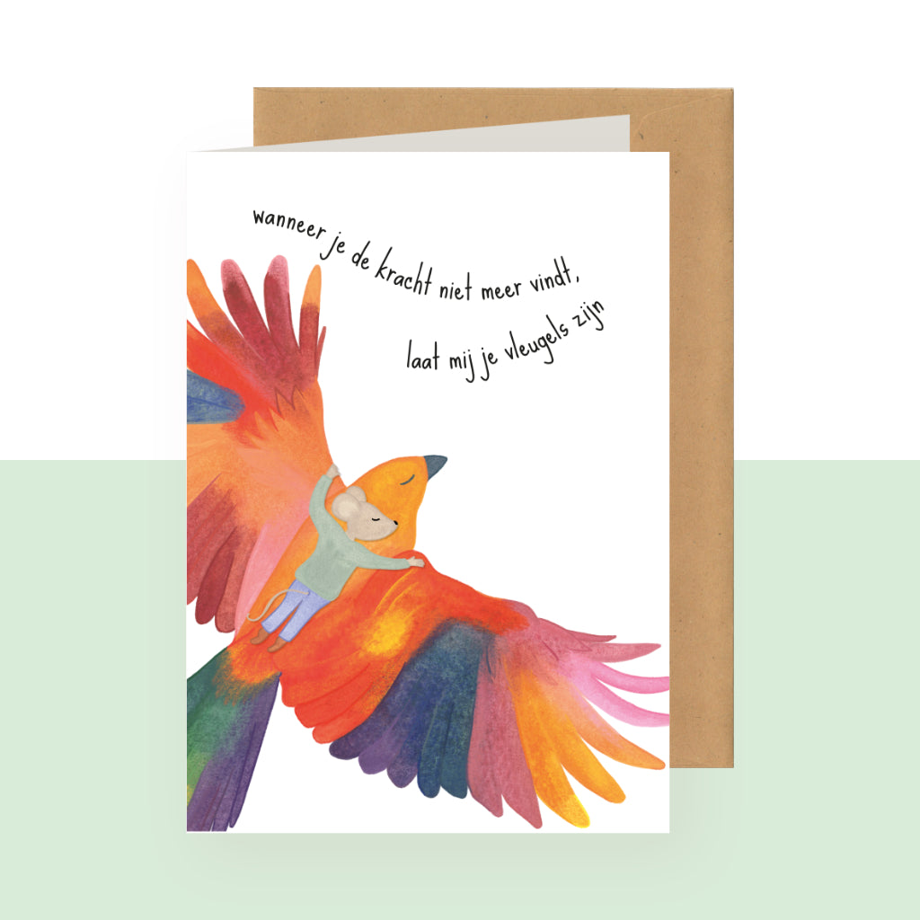 Voor wie door ziekte, verdriet of vermoeidheid gaat en en even niet meer weet hoe verder. Met dit kaartje geef je vleugels van hoop en nabijheid,