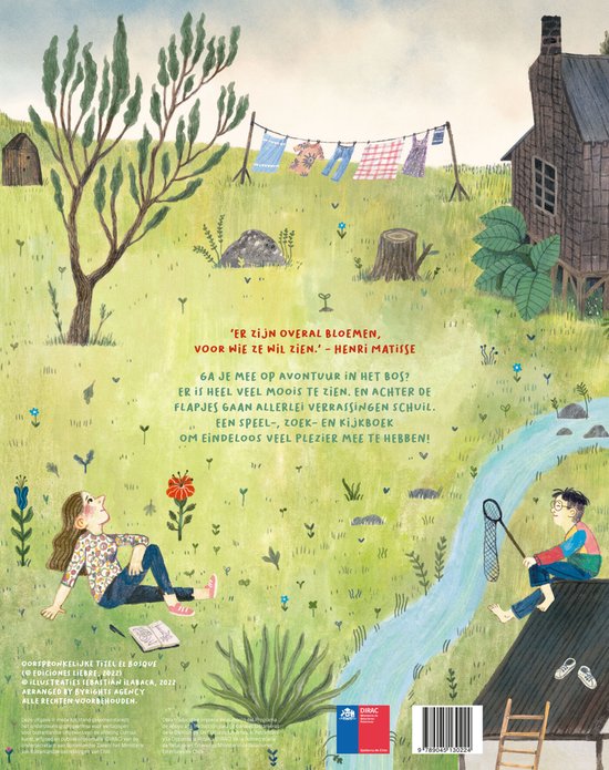 Dit tekstloze uitklapboek is meer dan 3 meter lang! Je kunt het rechtop zetten op de vloer en je helemaal omringen met dit prachtige bos. Aan de ene kant zie je een bos vol dieren die van alles beleven en aan de andere kant wordt het bos bewoond door mensen. Je kijkt er je ogen uit, zoveel bijzonders is er te zien. En achter de flapjes gaan nog meer verrassingen schuil.