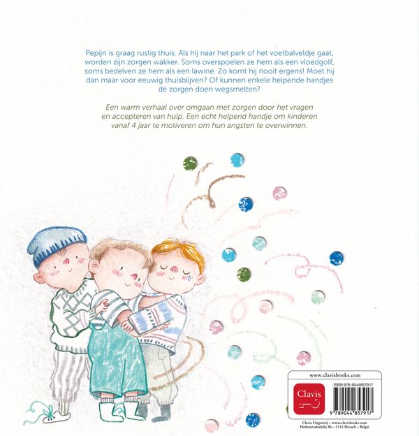 Pepijn is graag rustig thuis. Als hij naar het park of het voetbalveldje gaat, worden zijn zorgen wakker. Soms overspoelen ze hem als een vloedgolf, soms overrompelen ze hem als een lawine. Zo komt hij nooit ergens! Moet hij dan maar voor eeuwig thuisblijven? Of kunnen enkele helpende handjes de zorgen doen wegsmelten?
