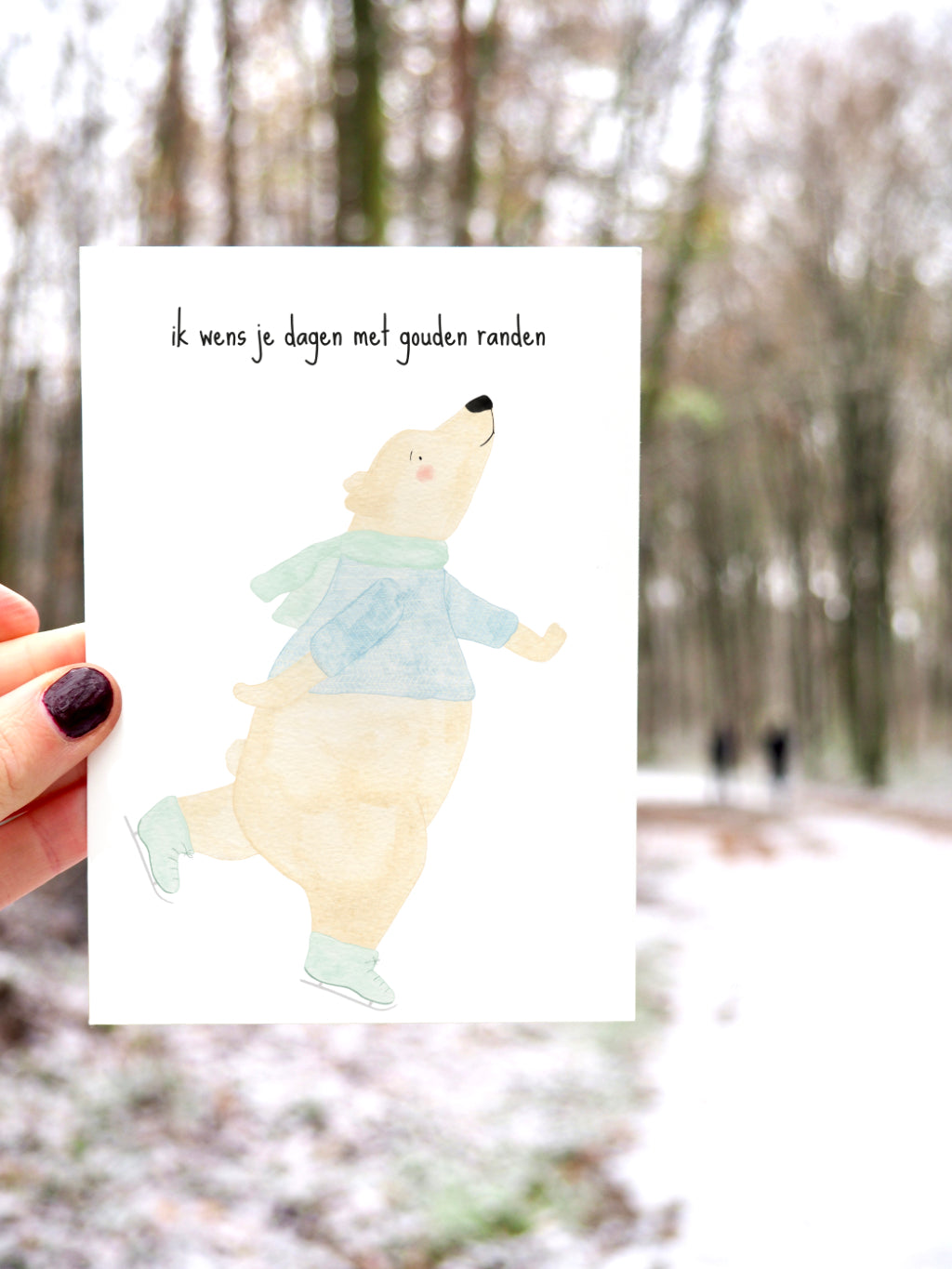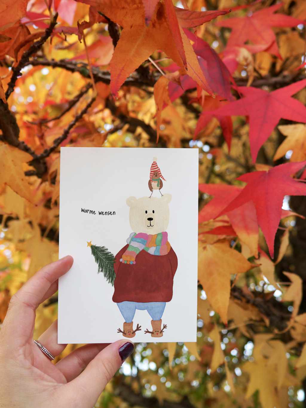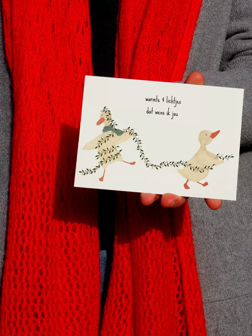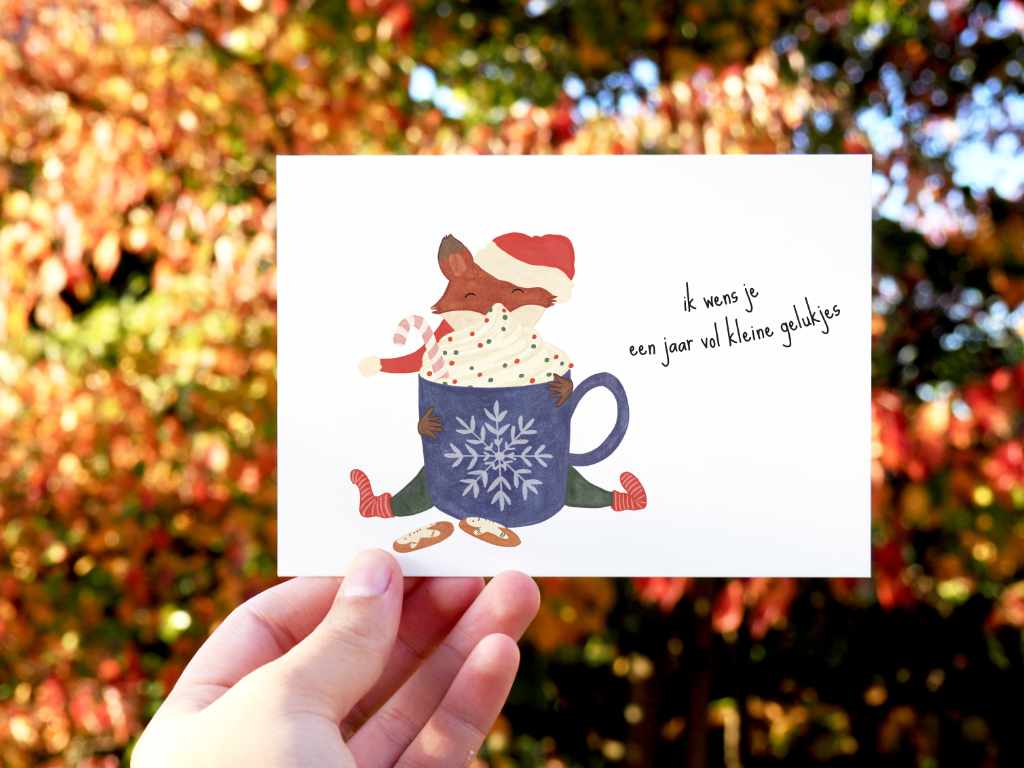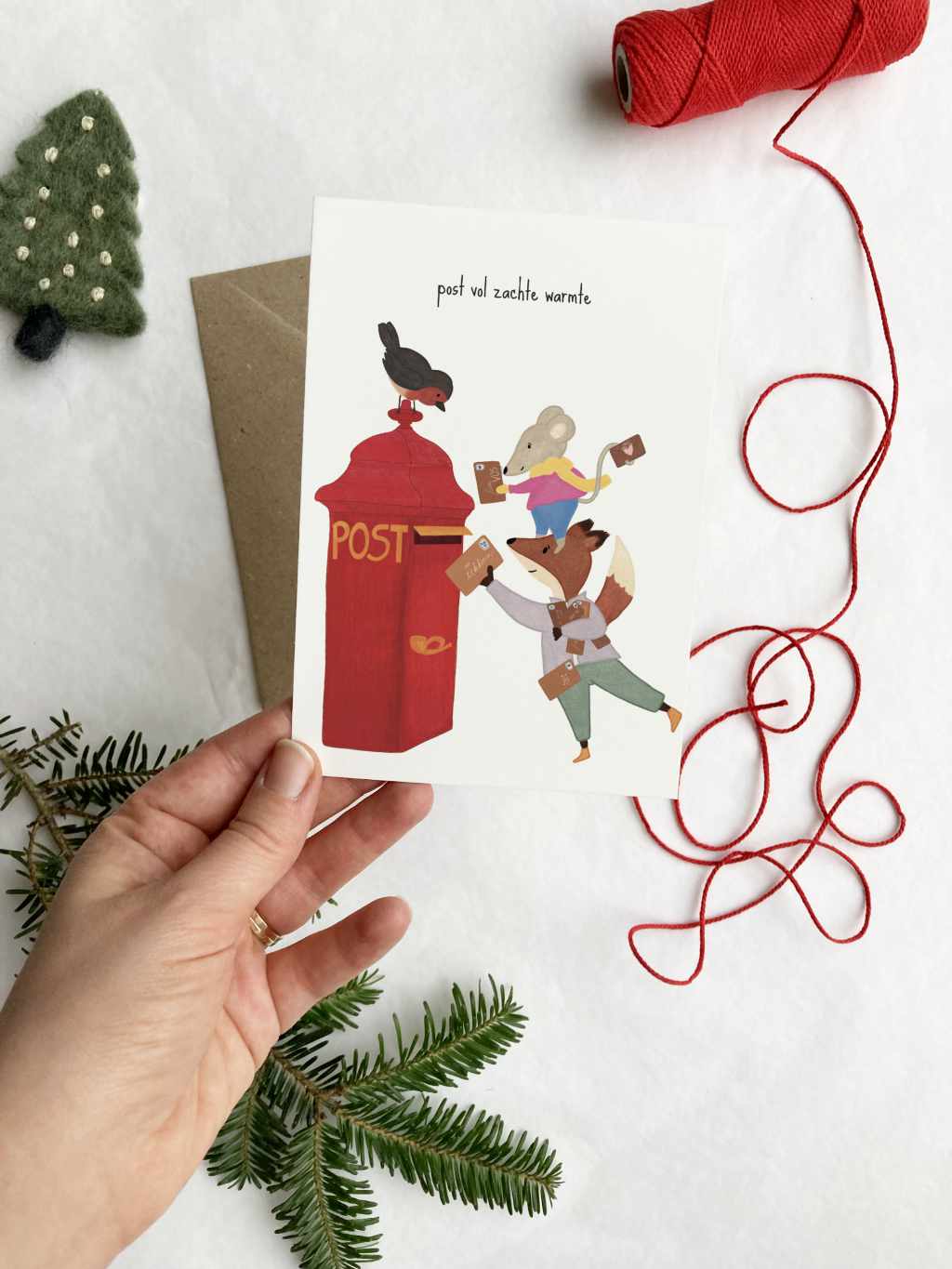 Op de achterzijde van de kaart vind je een kleine illustratie terug met een knipoog naar de voorzijde. Verspreid de warmte, verstuur een kaartje.