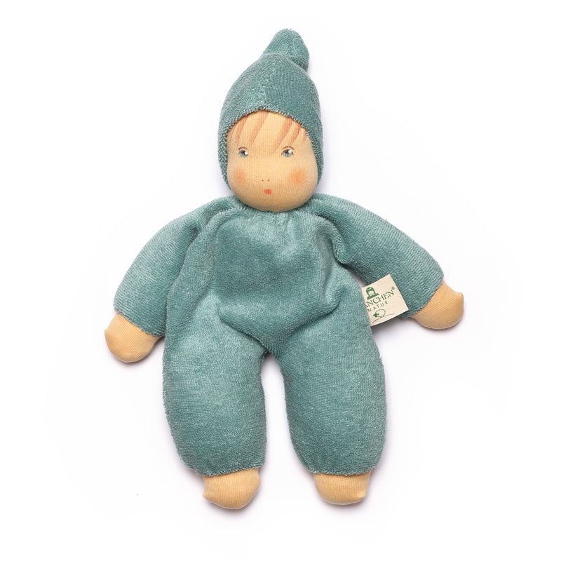 Deze lieve knuffelpop is met zorg gemaakt door Nanchen Natur. Gemaakt van natuurlijke materialen en gevuld met zachte schapenwol. Wol neemt warmte op en houdt de geur van thuis vast, waardoor de pop een vertrouwd en troostend gevoel geeft. Perfect als eerste knuffelvriendje en een waardevolle metgezel voor elk kind!
