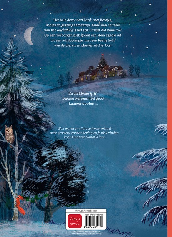 Het hele dorp viert kerst, met lichtjes, liedjes en gezellig samenzijn. Maar aan de rand van het winterbos is het stil. Of lijkt dat maar zo? Op een verborgen plek groeit een klein zaadje uit tot een miniboompje, met een beetje hulp van de dieren en planten uit het bos. En die kleine den? Die zou weleens héél groot kunnen worden …