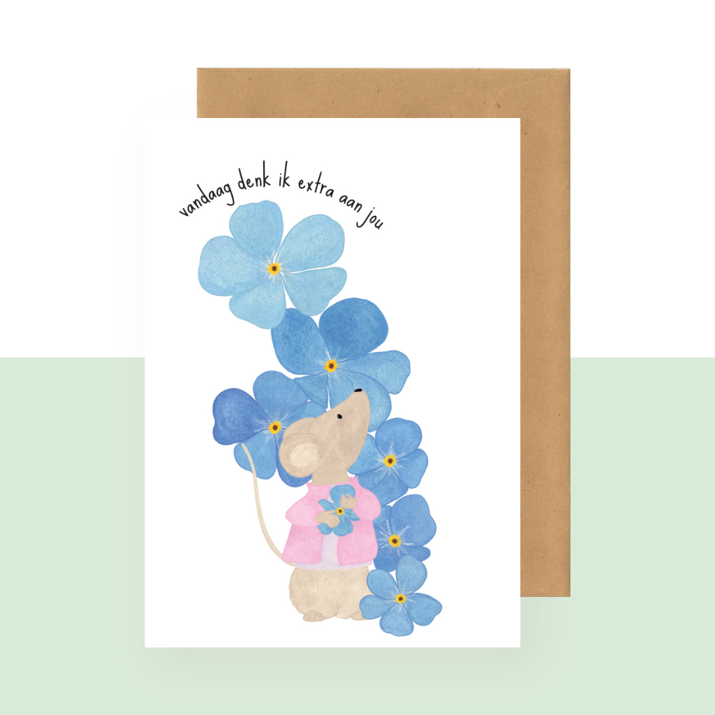 Op de achterzijde van de kaart vind je een kleine illustratie terug met een knipoog naar de voorzijde.